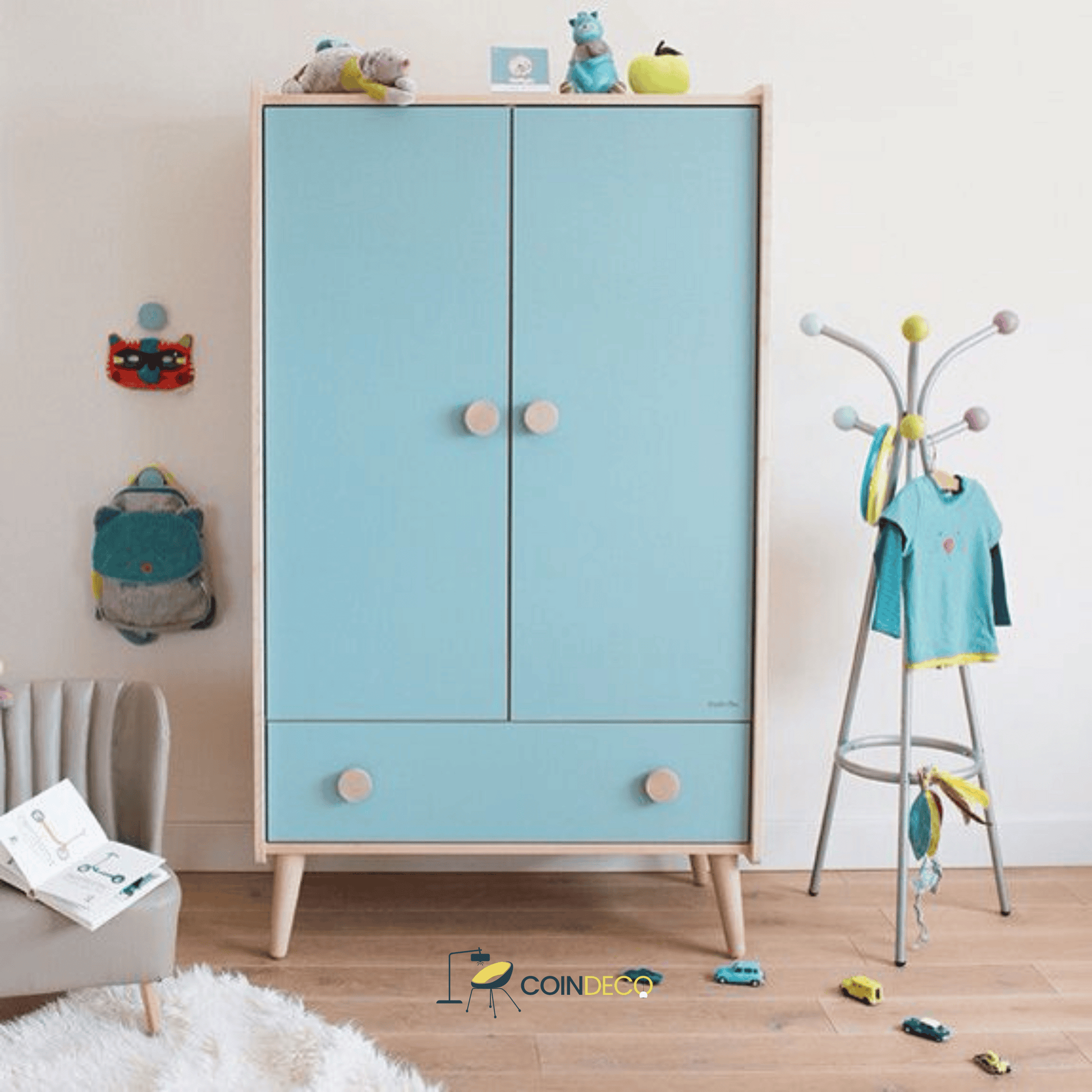 امنح غرفة طفلك لمسة من الأناقة والتنظيم مع خزانة الملابس العصرية للأطفال ببابين ودرجين سفلين