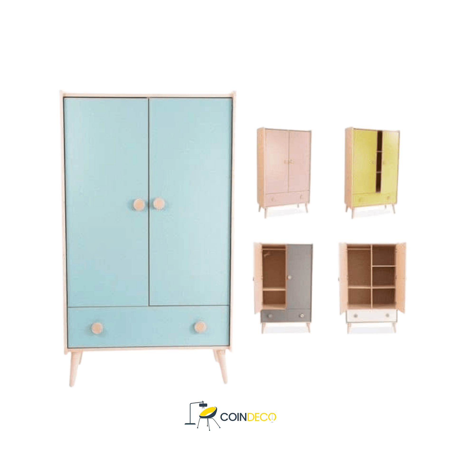 تم تصميمها بعناية لتجمع بين الوظيفة العملية والتصميم الجذاب، حيث توفر مساحة واسعة لترتيب الملابس، الألعاب، والملحقات اليومية، مع ألوان مبهجة تناسب أجواء غرف الأطفال